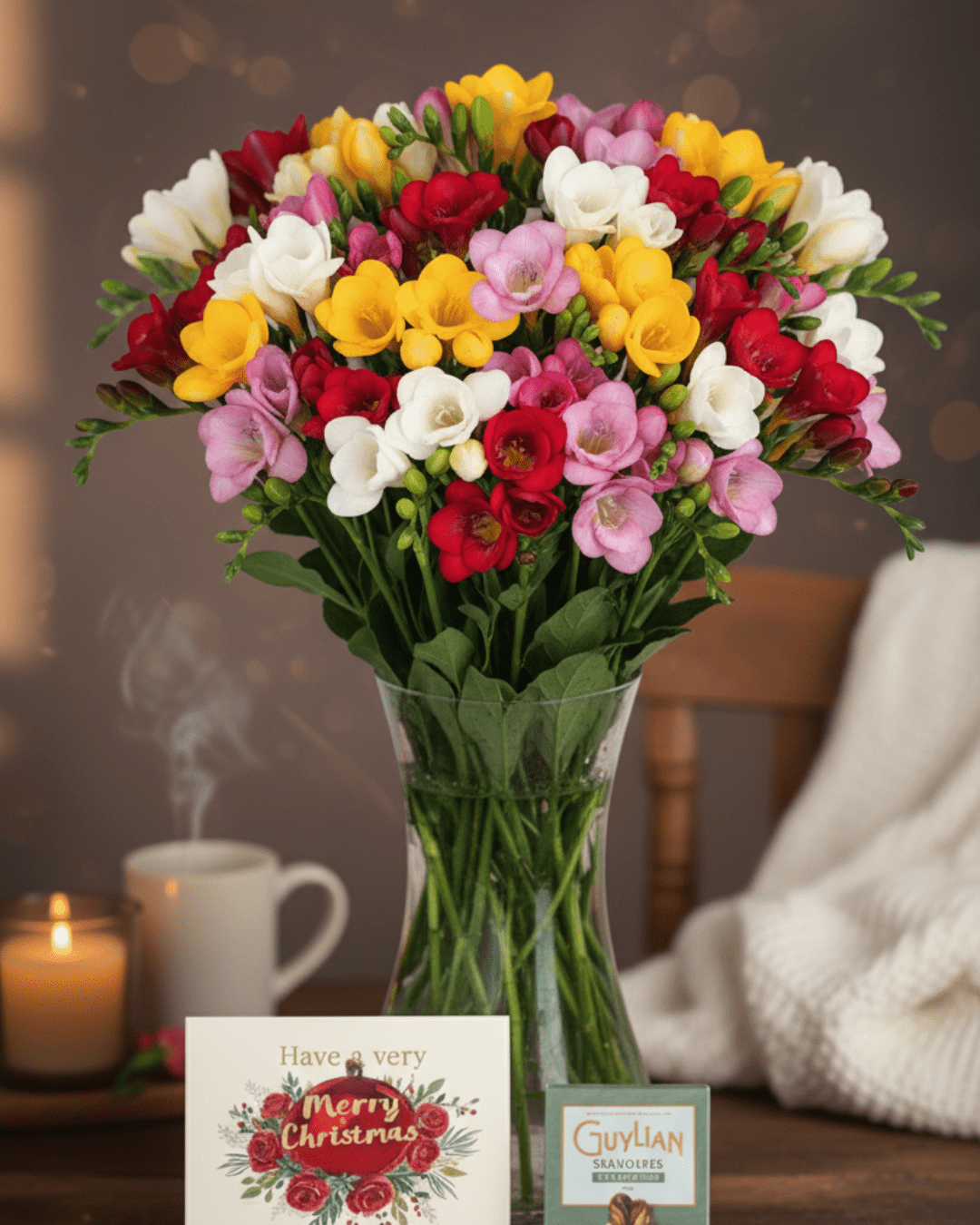 The scent of winter tranquility. Delicate, long-lasting Freesia chosen for its exquisite fragrance and classic touch.
